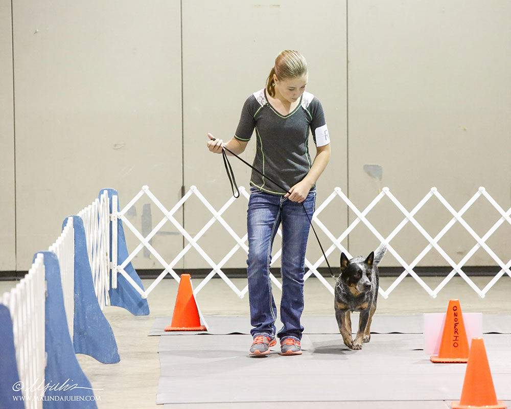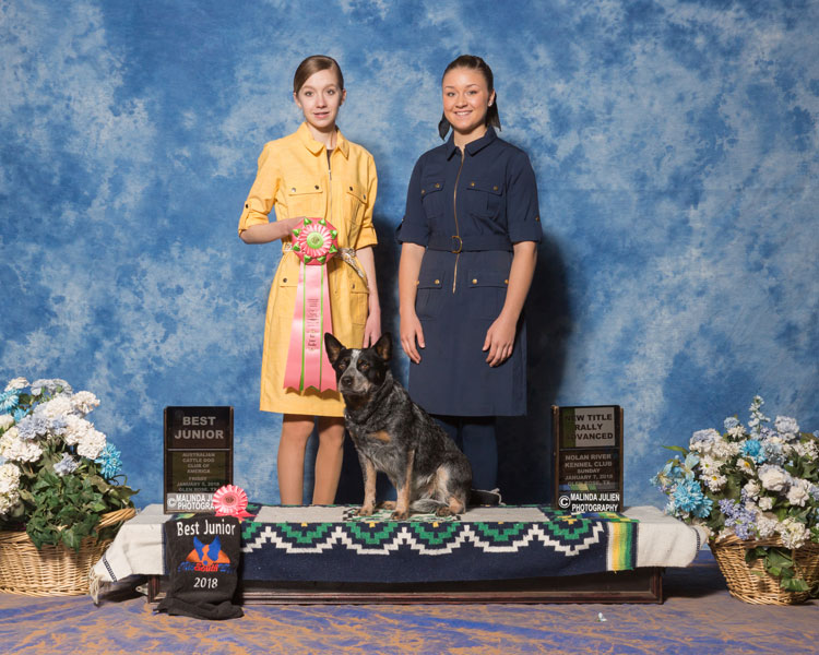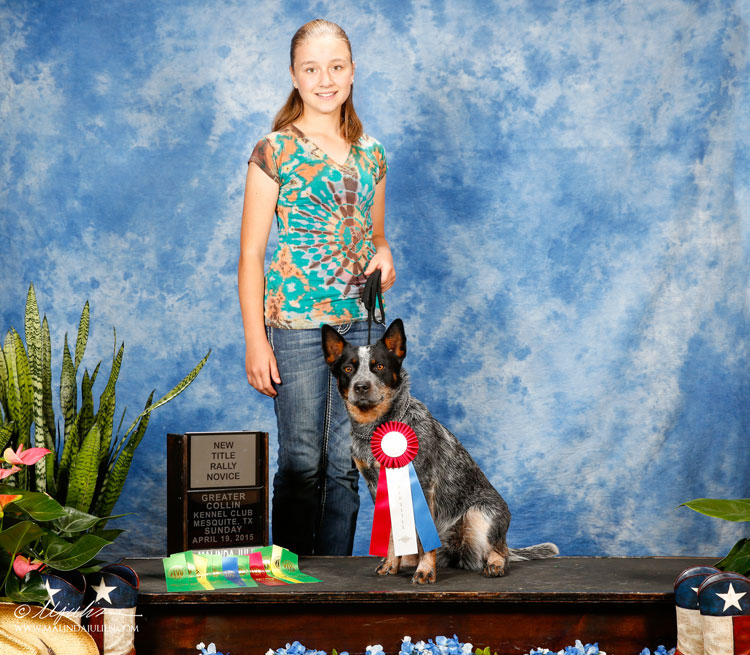 "Reign" has a tremendous peronality and loves to work stock. She is even good at herding chickens and will help put them up in thier coops at night. A strong herding instict and a keen eye make her a fantastic working dog. She comes for a long line of conformation champions and is conformation pointed herself. Reign has her CD, Rally Excellent (among other Rally Titles) and Canine Good Citizen Title. She has 1 leg on her HIT (Herding Instinct Test) - She continues to be trained, shown by Kylee and loved by all of us.