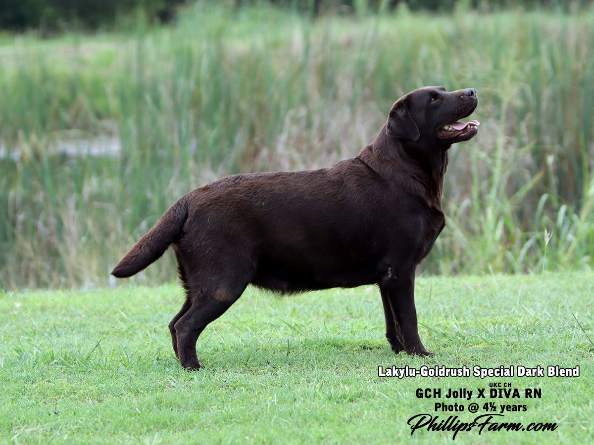 "Special" is an impressive chocolate Labrador Retriever, distinguished by her kindness, affectionate nature, and unwavering loyalty. Her refined temperament renders her an exceptional addition to our program.
