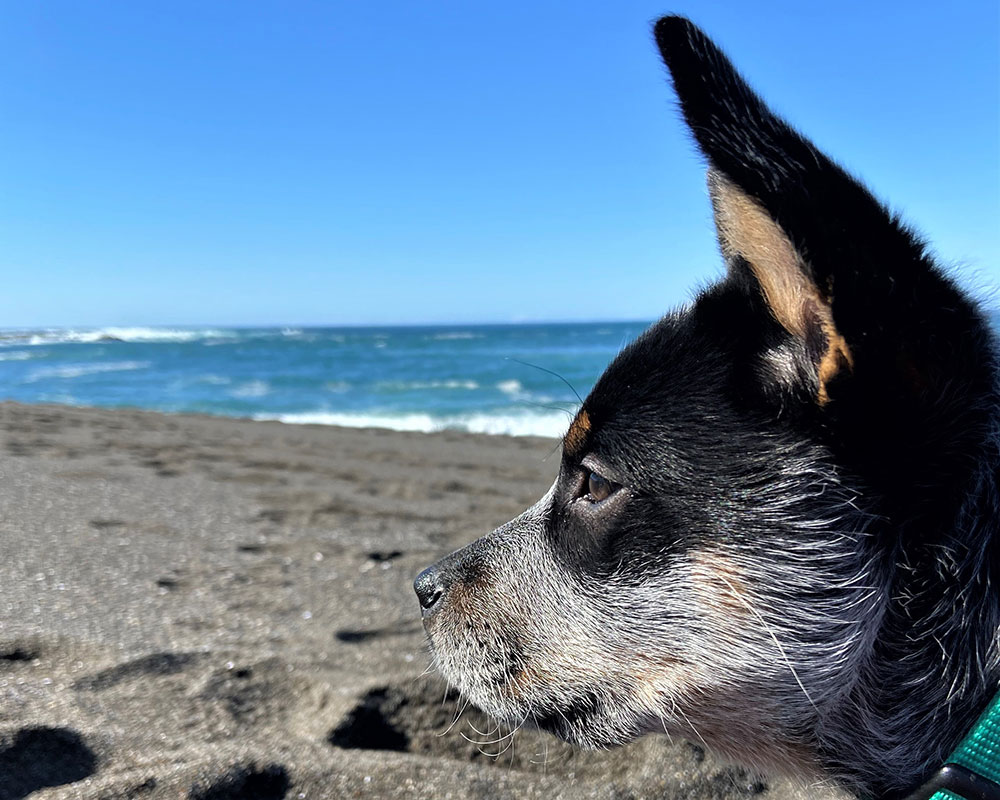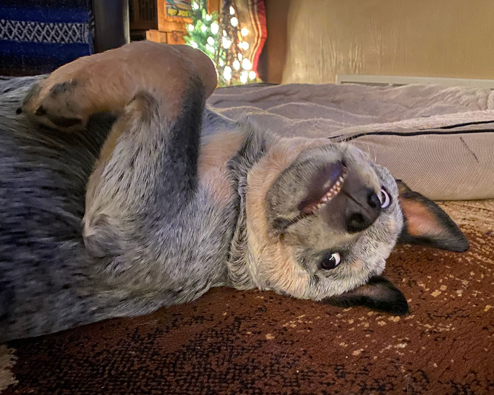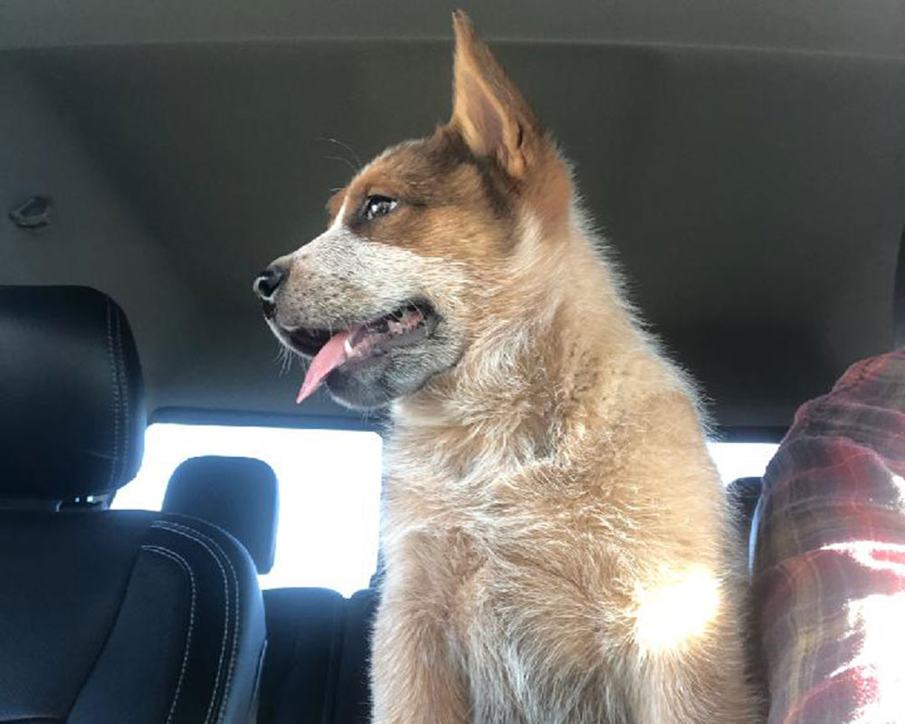 That brings us to Boomerang aka Boomer The Zoomer! He has been the most wonderful addition to our family. When they call ACDs Velcro Dogs, this is no joke- Boomer is always right behind one of us and is the cutest little shadow I could have asked for. He the textbook definition of an ACD: smart, alert, very eager to learn, and a bundle of energy. He has great confidence and has greeted every new person with tail wags and requests for tummy rubs. He is a master at puzzles and we already know he will love hiking, running, and playing frisbee.
